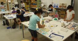 画家として平面作品のワークショップ(昨年と違う技法)