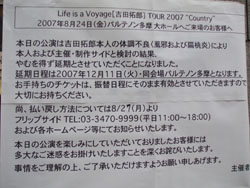 吉田拓郎さま!突然の体調不良により本日のコンサート中止!?