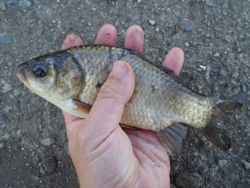彼は本日の釣果で最も大きかった真鮒ちゃんです。(19センチ)